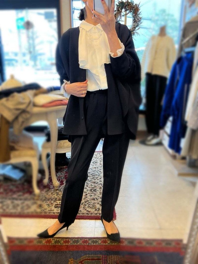 https://www.instagram.com/selectshoproom https://ameblo.jp/vennynao/ 綿 57% ナイロン 36% ポリウレタン 7% 程よくハリ感のあるブラウス素材を使用したボリュームスリーブブラウスです。 ケープの様なデザインの袖口にはたっぷりとギャザーを。衿ぐりには繊細なギャザーを寄せる事で、上品な印象のボリュームスリーブブラウスに仕上げています。 フォーマルなシーンはもちろん、カジュアルなシーンでも幅広くご着用頂けます。 前後着用可能です。 着丈:70cm バスト:118cm 裄丈:(NP~)72cm 1741020