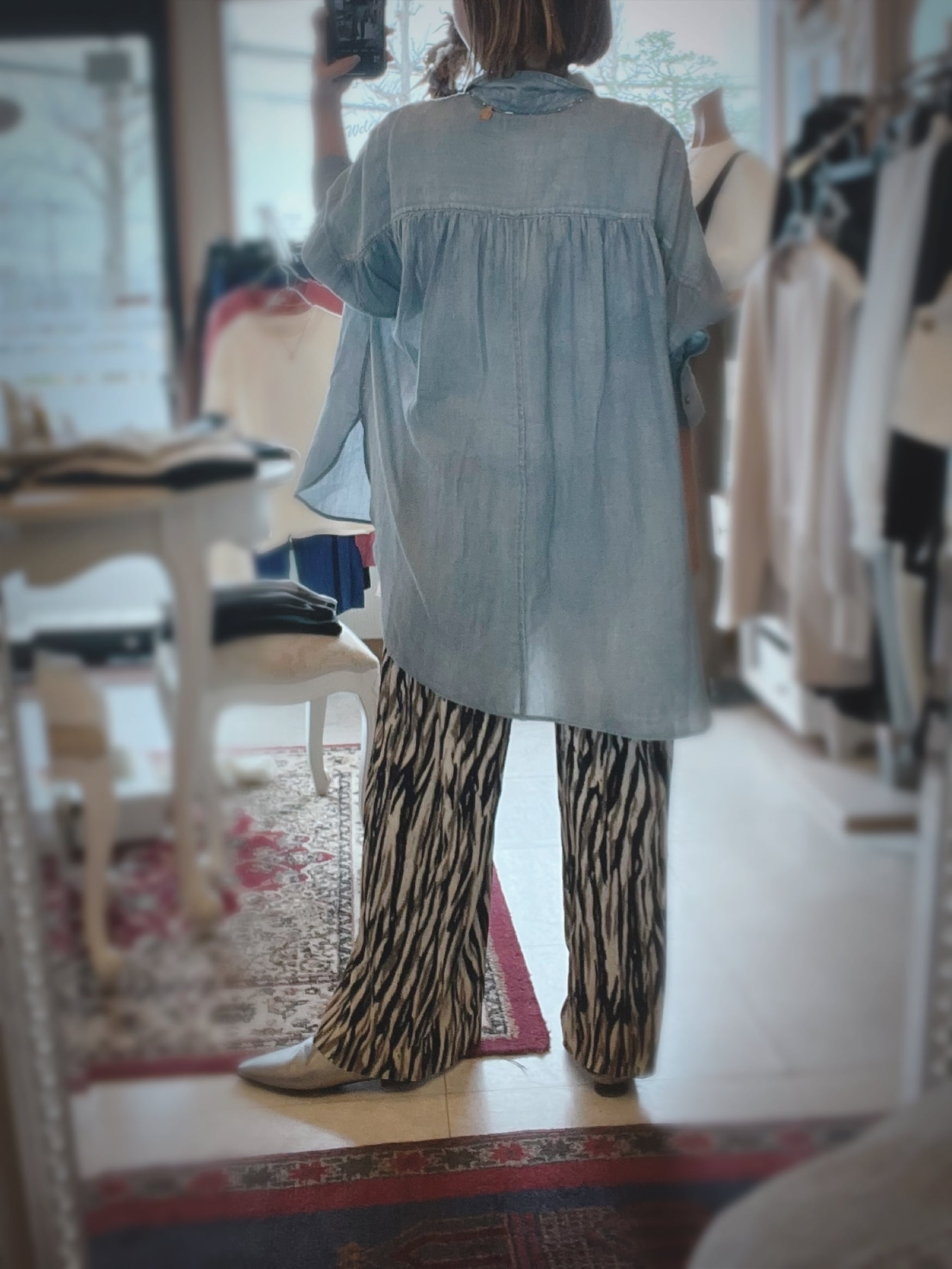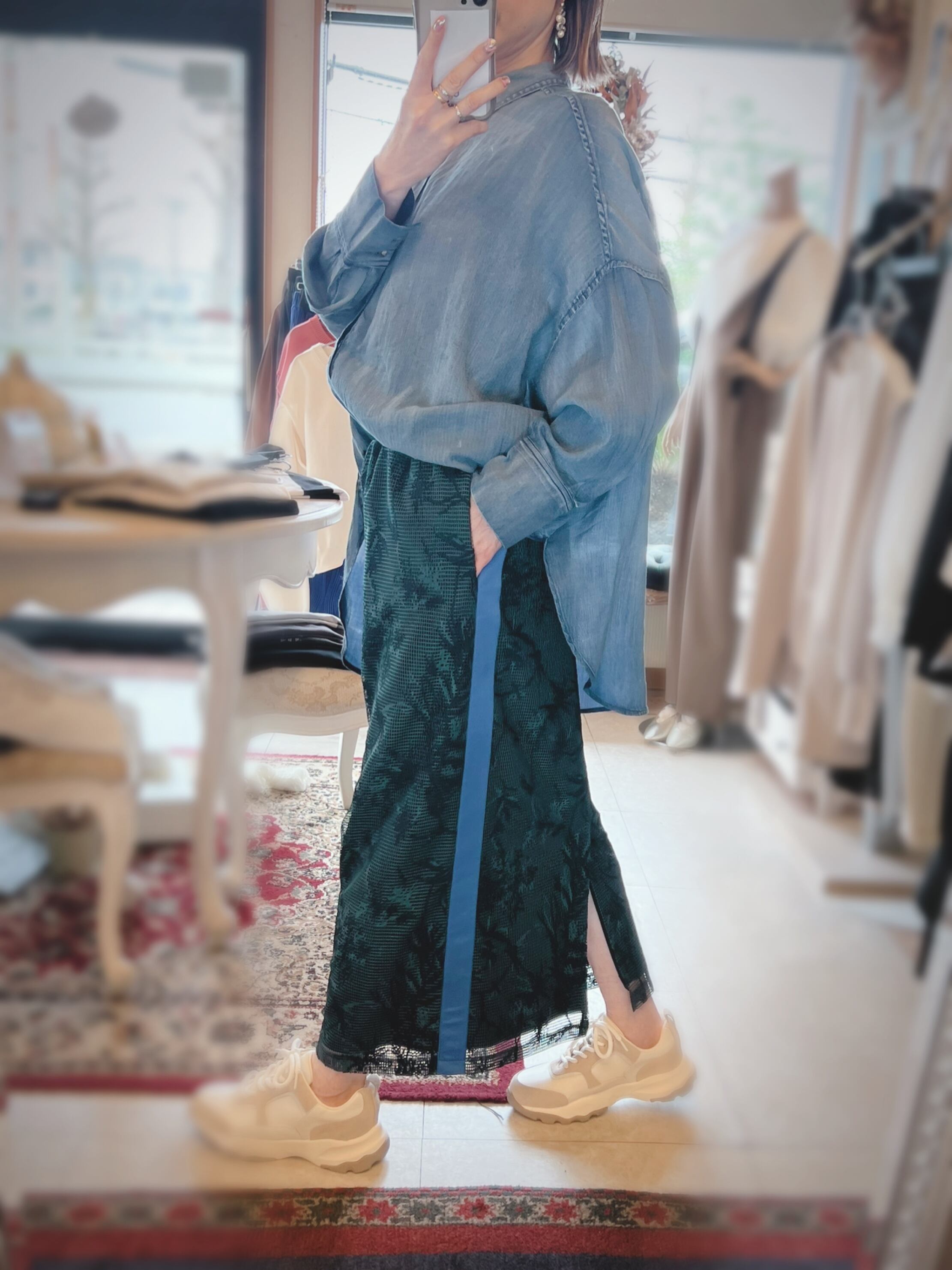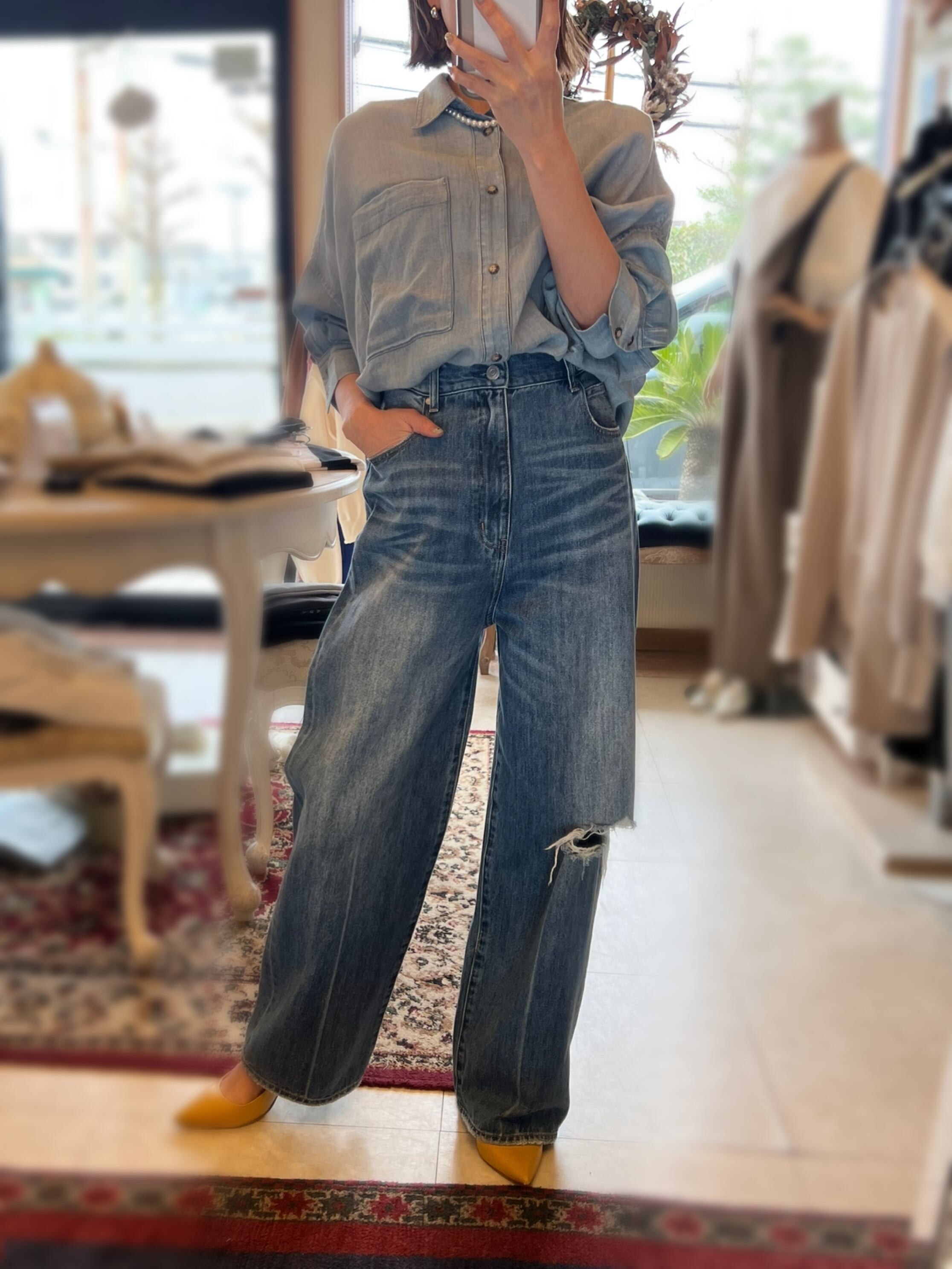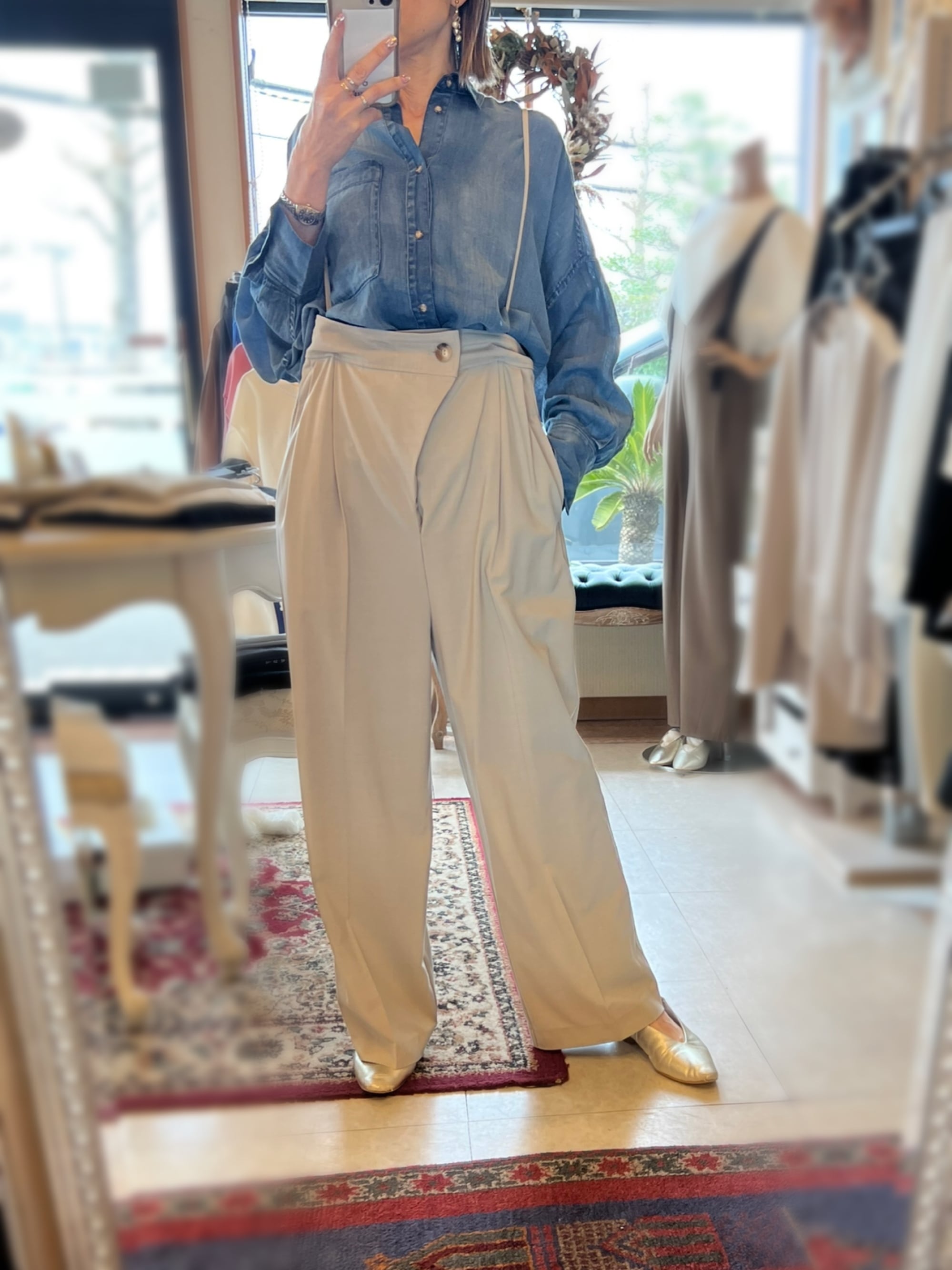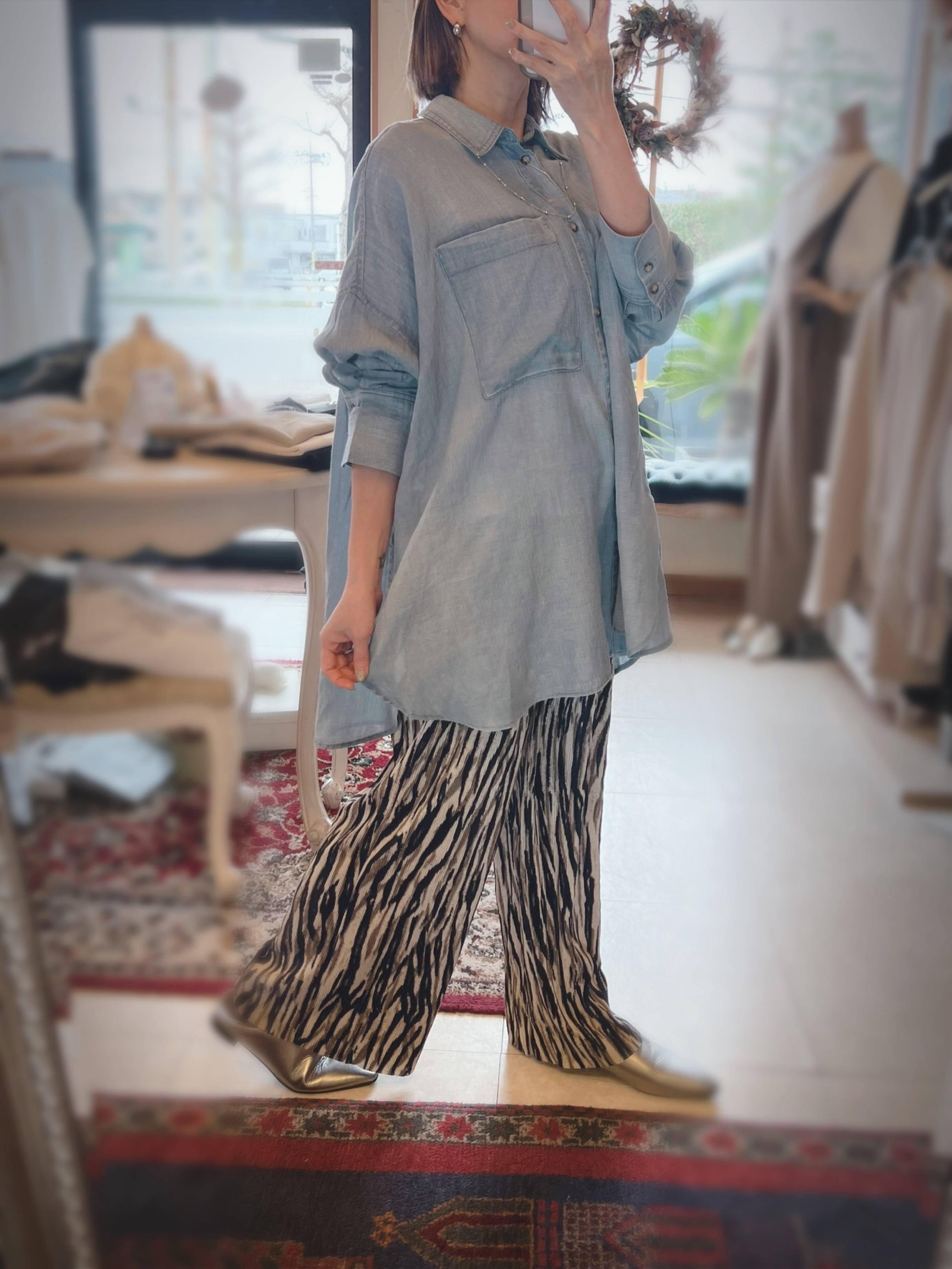 ■どんなシーンにも活躍!2.5オンスダブルネームシャツ/RILATOは、パンツと合わせるだけでなく、スカートスタイルにもフィットする多彩な着こなしが可能です。スタイリッシュなシルエットと上品なデザインが、毎日のコーディネートを引き立てます。シンプルでありながら、特別感を感じさせる一枚として、ぜひワードローブに加えてください!