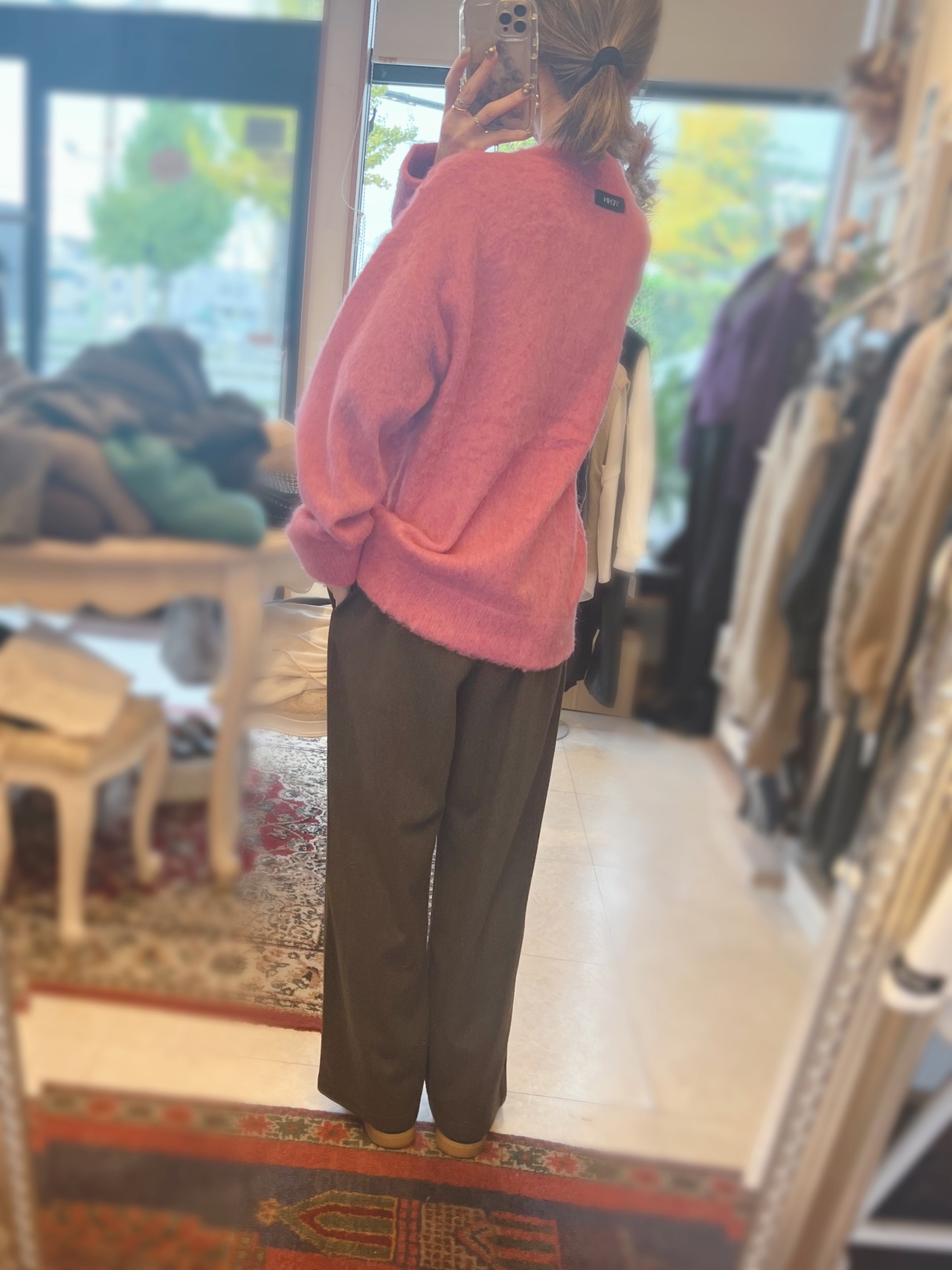 起毛加工を施したアルパカのカーディガンです。