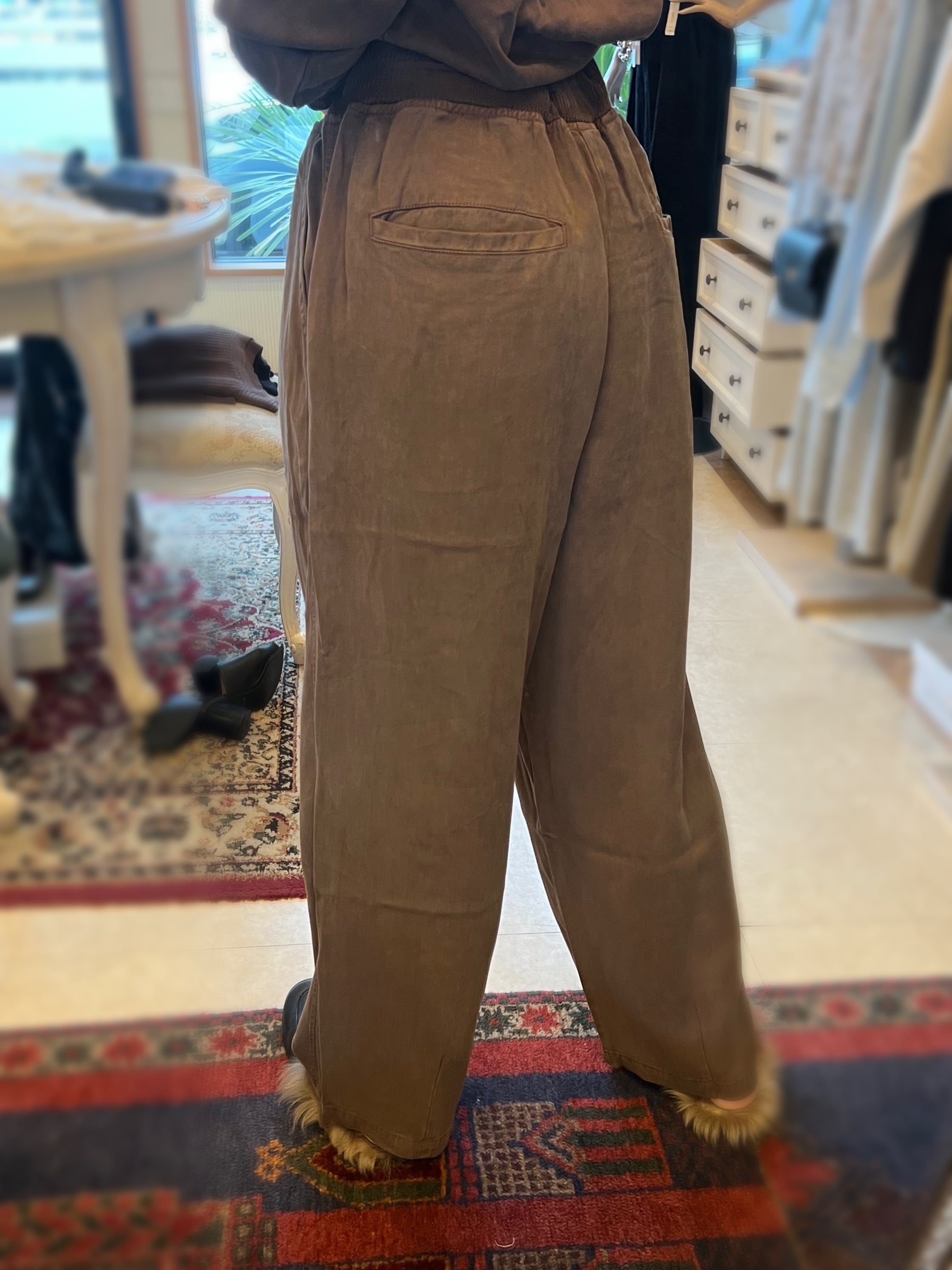 「テンセルタックパンツ/flamingo firm」は、優れたドレープ性と柔らかな手触りが特徴の一着です。テンセル素材を使用しているため、肌に優しく、快適な着心地を提供します。また、ウエスト周りには伸縮性があり、動きやすさを考慮したデザインが魅力的です。タックのあるスタイリッシュなシルエットは、オンオフ問わず幅広いシーンで活躍します!洗練されたルックスを持ちながらも、カジュアルなアイテムと合わせやすく、デイリーユースにもぴったりです。新しいコーディネートにぜひ取り入れて、スタイリッシュなスタイルを楽しんでください。