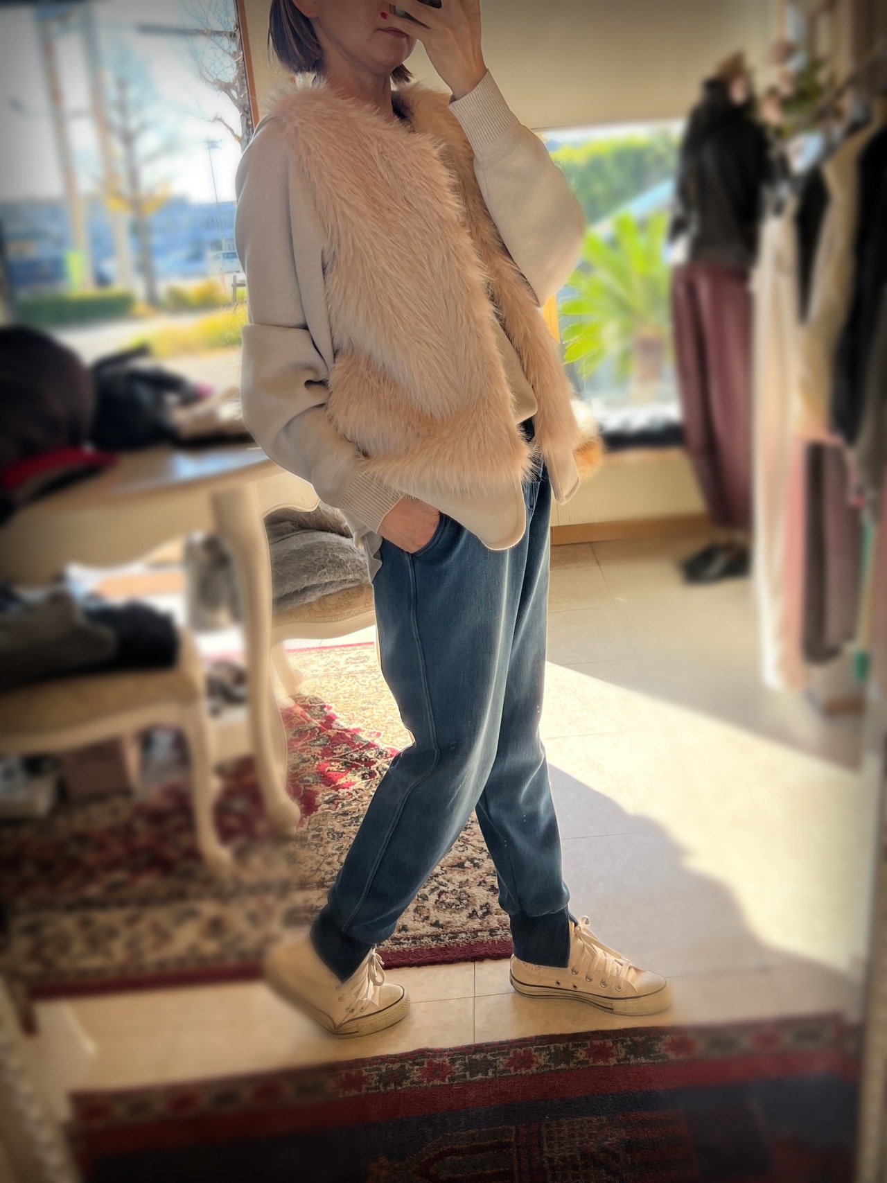 ■デニム裏ボアジョガーパンツ 寒い季節にぴったりなデニム裏ボアジョガーパンツが登場!内側に暖かなボアを使用し、寒さをしっかりと防いでくれます。カジュアルな雰囲気ながら、履き心地も抜群でお出かけやリラックスタイムに最適です。 ■特徴 - 裏地には柔らかなボアが施されており、暖かさをキープします。 - ジョガーパンツ特有のリブでフィット感があり、動きやすさも兼ね備えています。 - デニム生地がもたらすカジュアルな印象は、コーディネートの幅を広げてくれます。