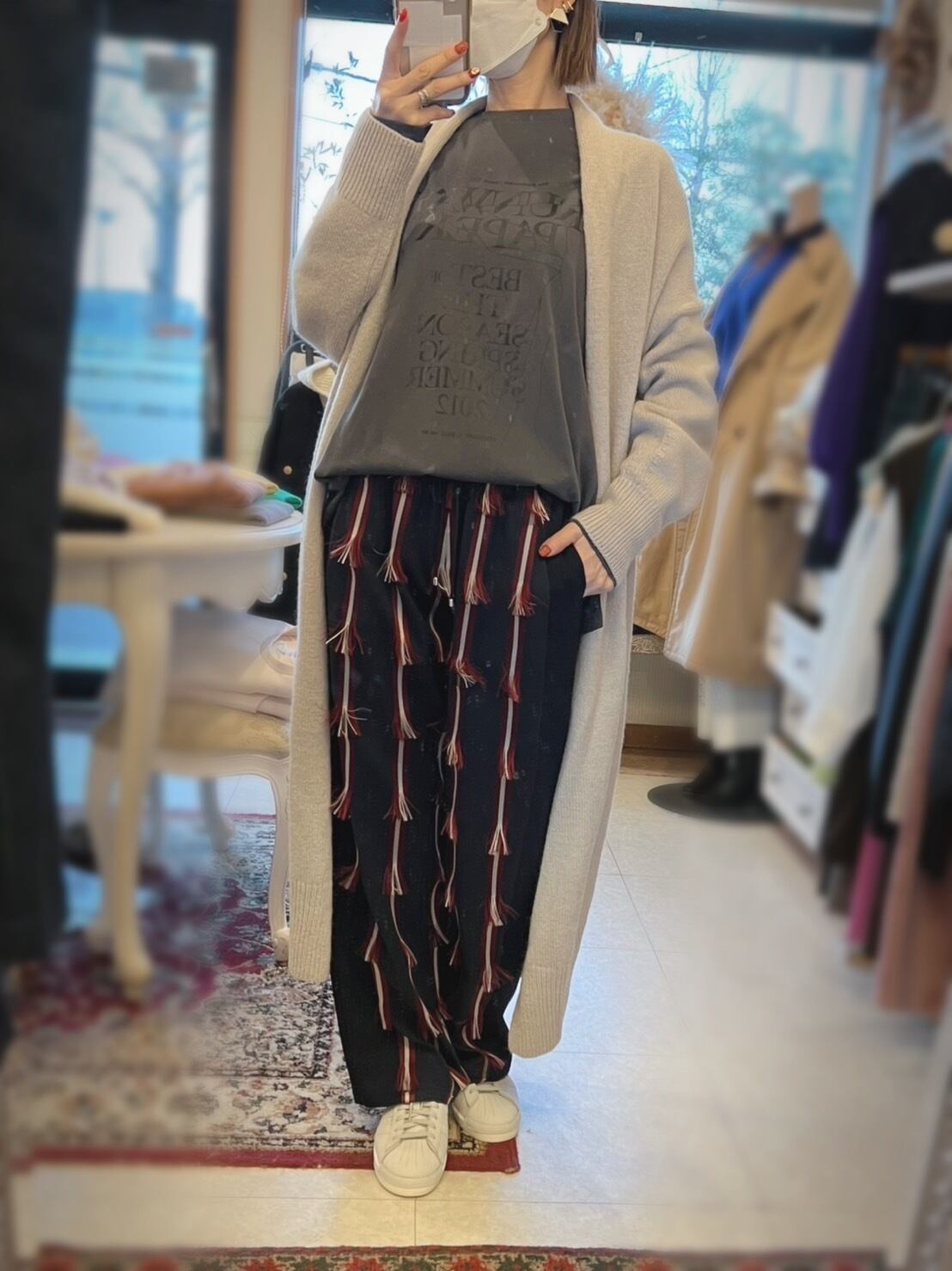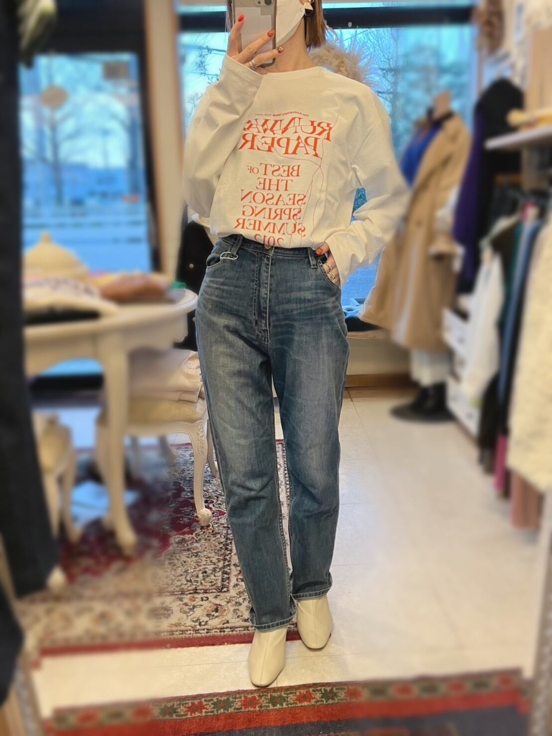 肌馴染みがよく、ジャケットやニットの中にも着用できるサイズ感でシーズン問わず着用できるプリントTシャツ。