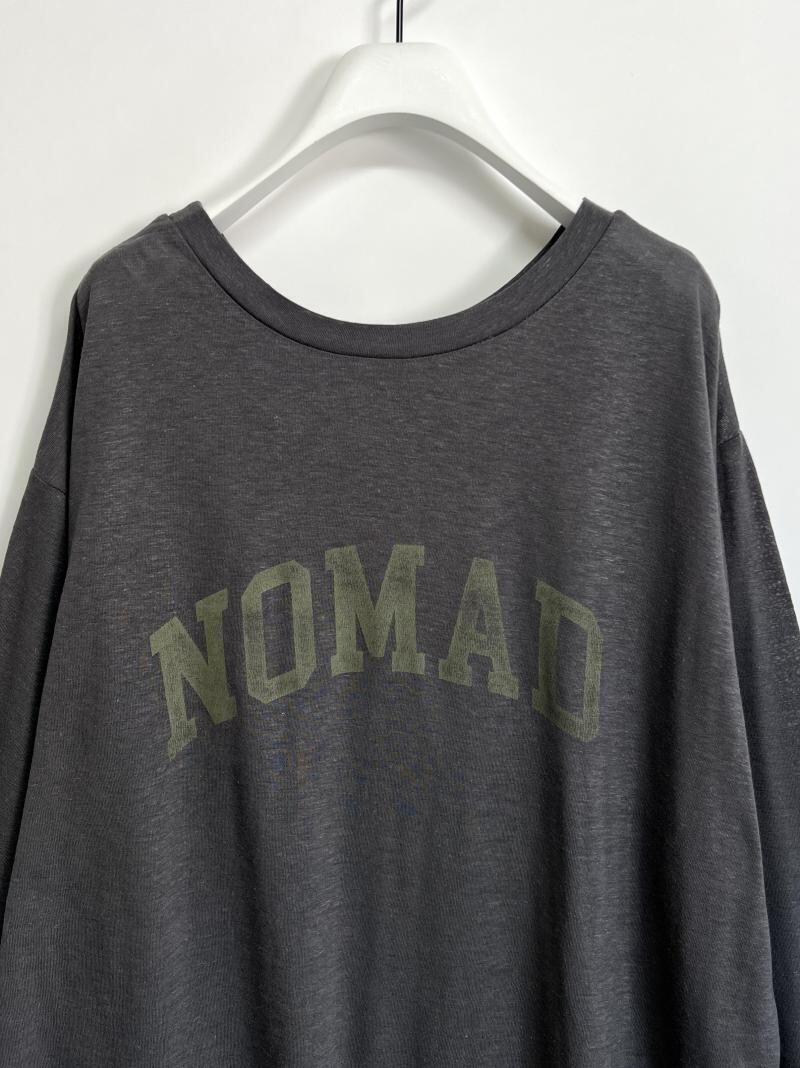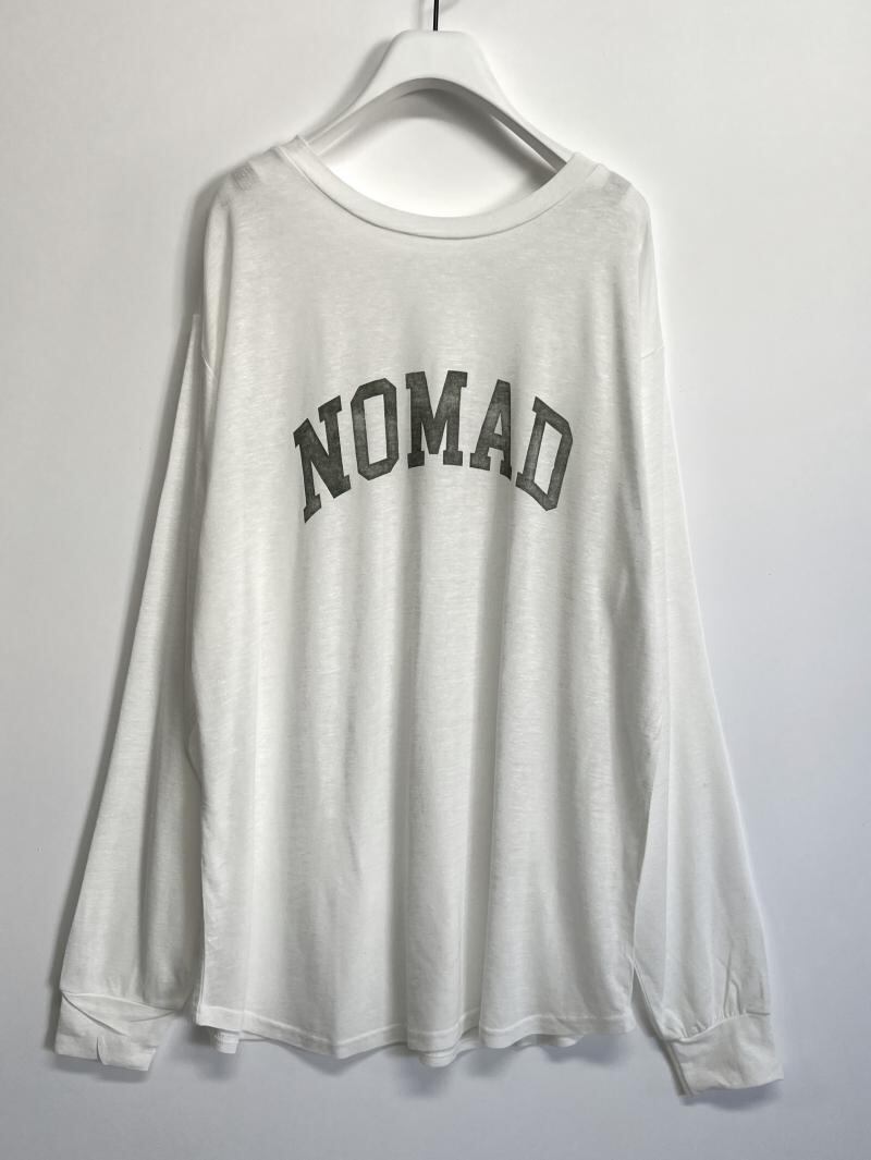 透け感のあるカットソー素材にカスレロゴのプリントを載せる事でヴィンテージ風の雰囲気に仕上げています。