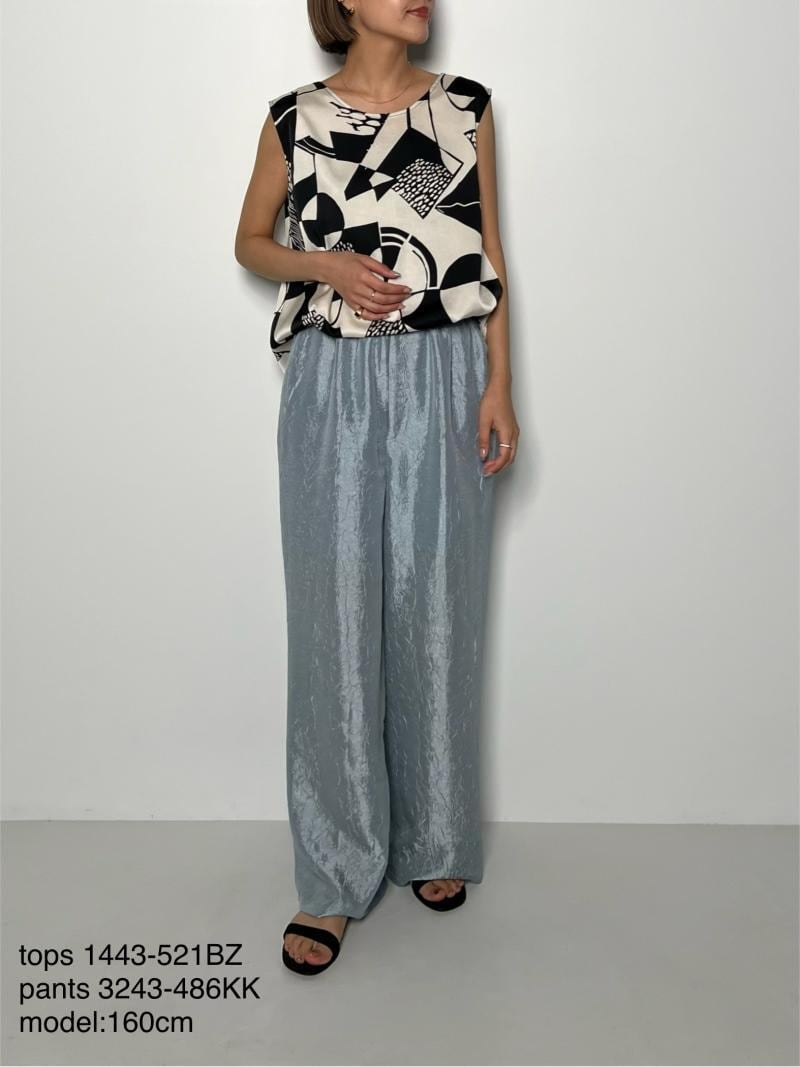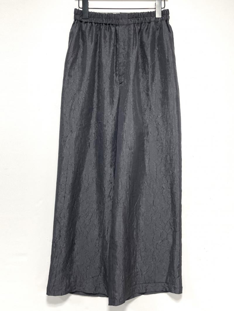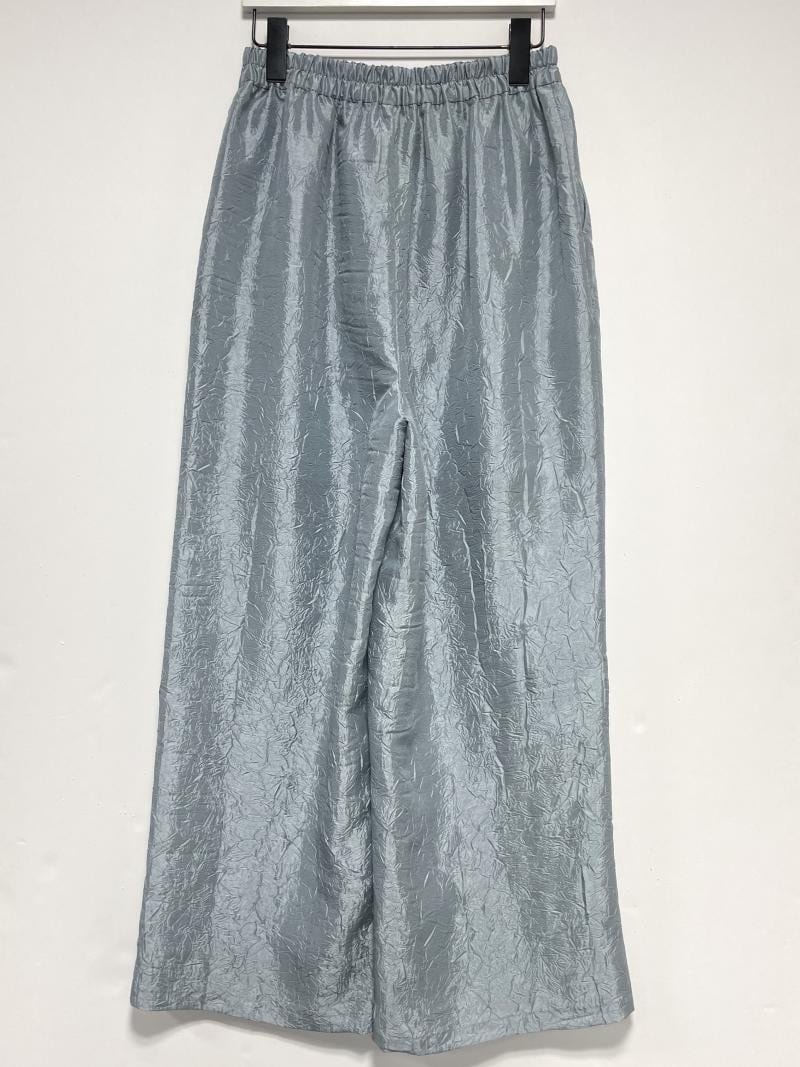 シワ加工と微光沢が特徴的な素材をセレクトしたワイドパンツです。
