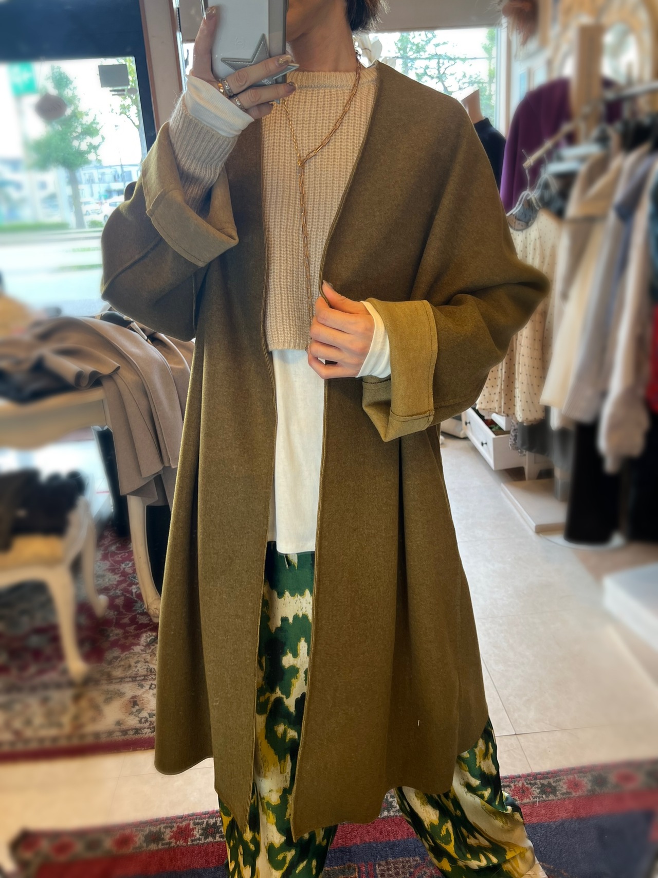 atelier brugge ダブルフェースノーカラーコート